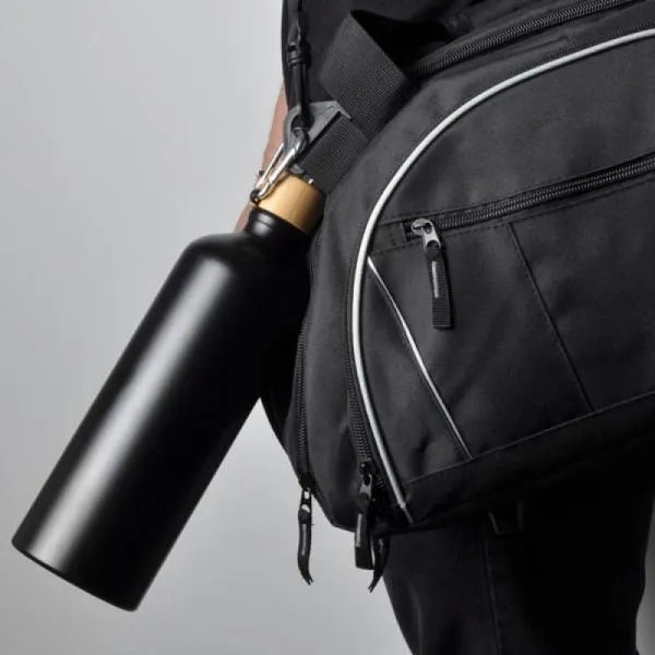- Mosquetão integrado: Facilita o transporte preso a mochilas e bolsas, o que amplia a visibilidade da marca no dia a dia de quem usa