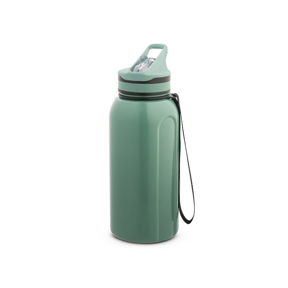 Squeeze esportiva em PETG, tampa com bico de canudo flip e canudo flexível no interior, com pega para facilitar o transporte. Grande capacidade até 1230ml. Certificação EU Food Grade