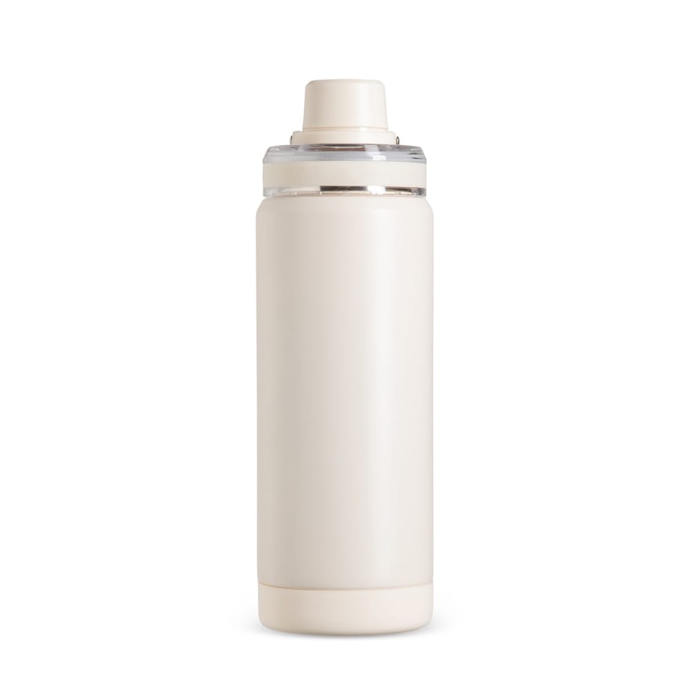 Garrafa térmica em inox 304 com capacidade máxima de até 600ml. Conta com estrutura de parede dupla e vedação a vácuo para manter a temperatura de líquidos conservada por mais tempo. Possui tampa rosqueável em plástico com protetor para o bocal e alça para transporte. Acompanha protetor antiderrapante para a base.