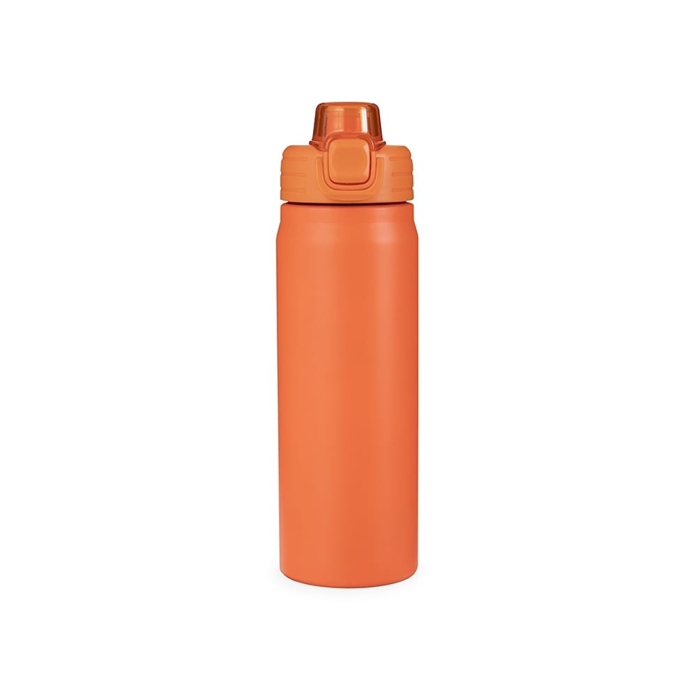 Garrafa térmica com capacidade para até 680ml. Feita em inox 304, possui estrutura de parede dupla e vedação a vácuo, permitindo a conservação da temperatura de líquidos por mais tempo. Conta com tampa rosqueável com trava de segurança, botão de acionamento para abrir a tampa protetora do bocal e alça para transporte. Acompanha um canudo plástico para encaixe no interior da garrafa.