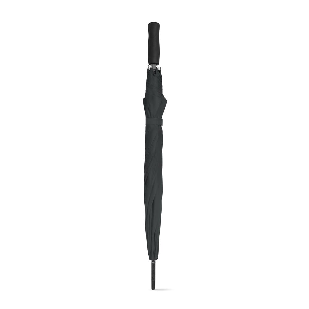 Guarda-chuva em poliéster pongee 190T, com varetas e haste em fibra de vidro e pega em EVA. O guarda-chuva tem abertura automática