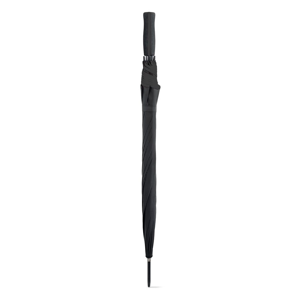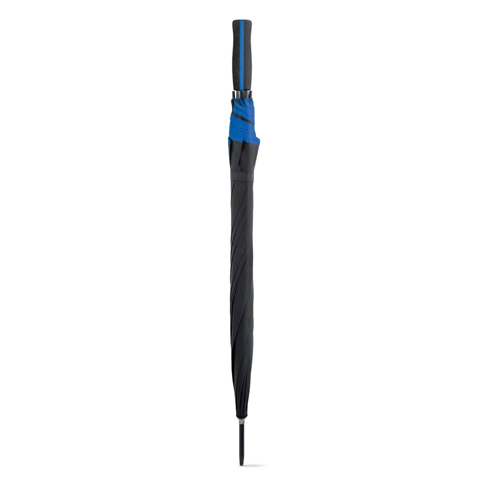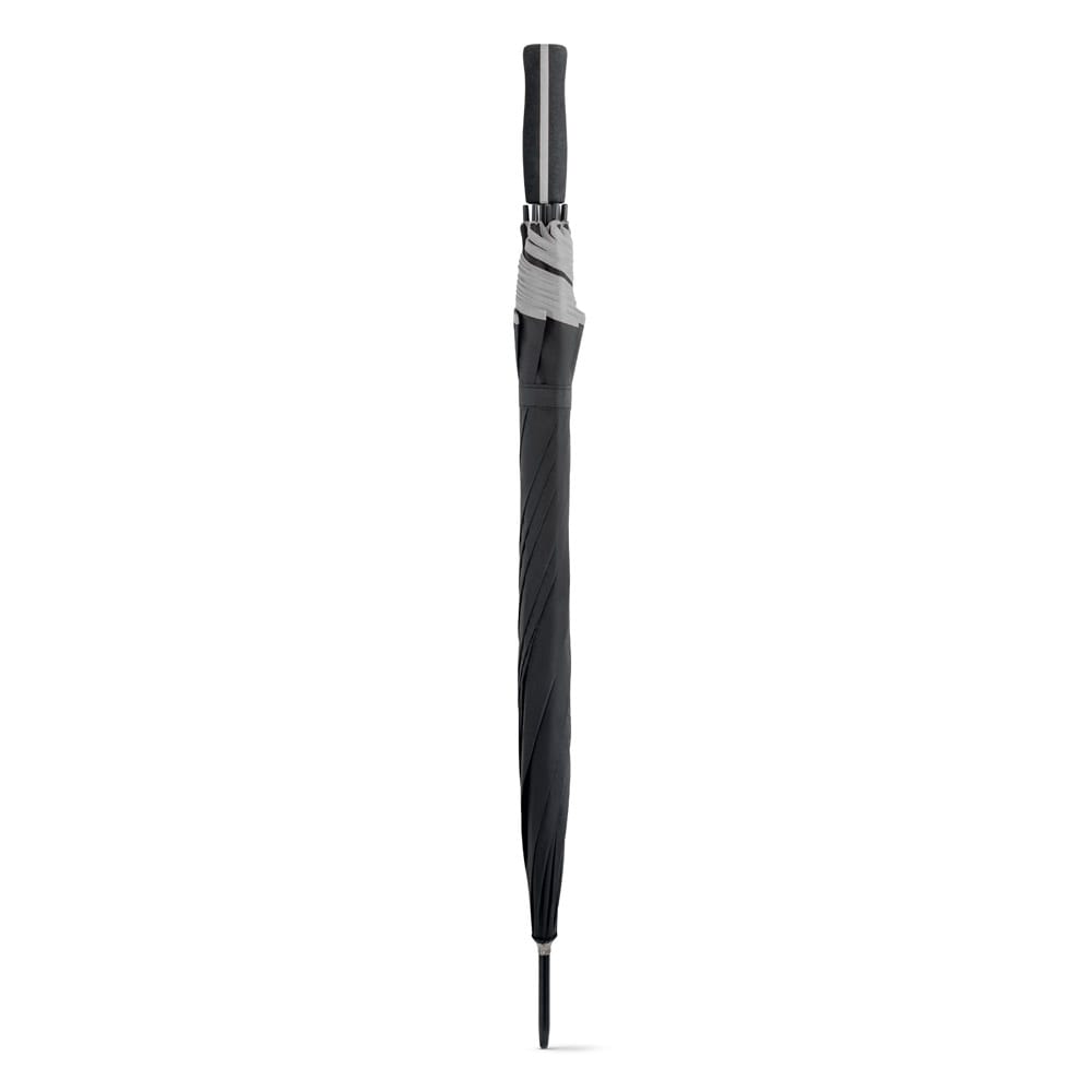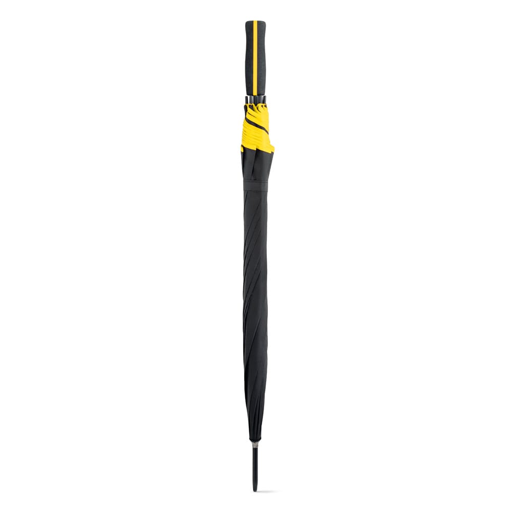 Guarda-chuva em poliéster 190T, com pega em EVA. O guarda-chuva tem abertura automática e detalhe com linha colorida à volta e na pega