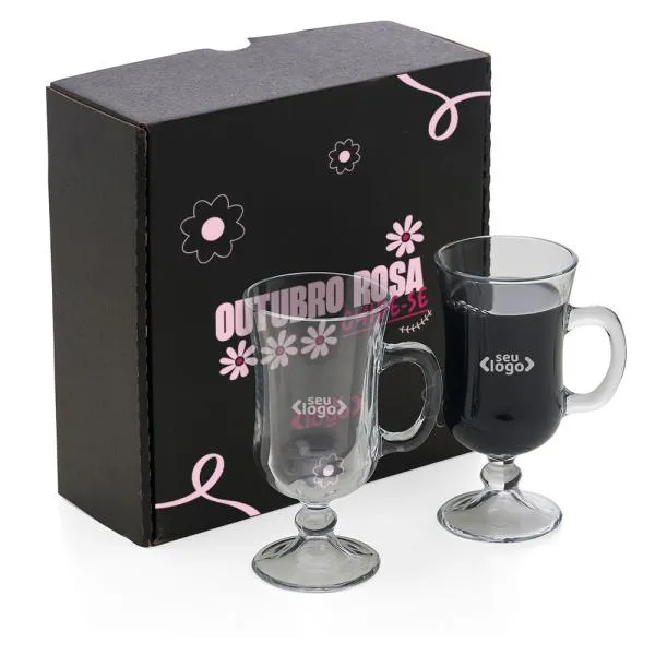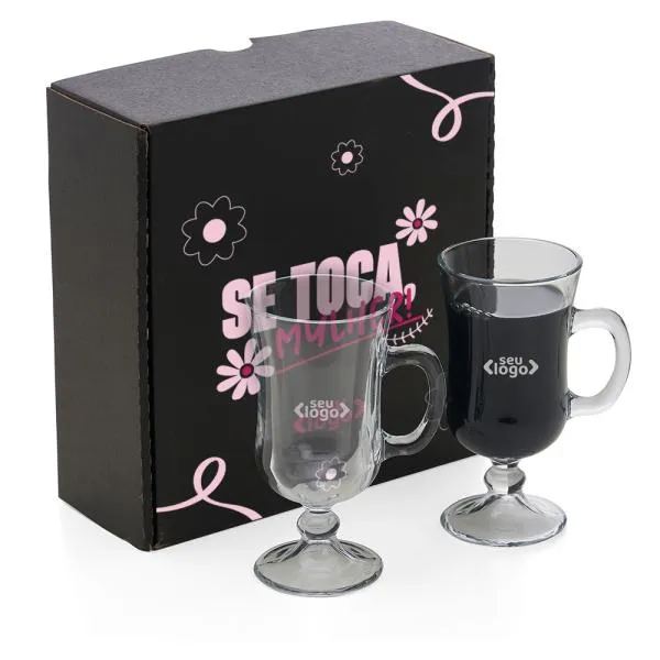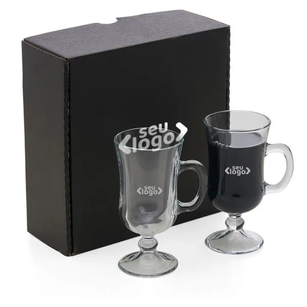 - Composição: Jogo com 2 canecas de vidro para café