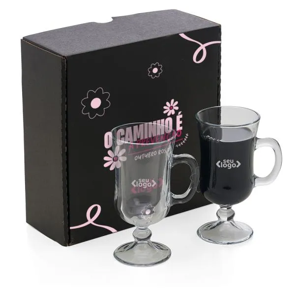 Jogo com 2 canecas de vidro para café que une funcionalidade e significado, ideal para ações de conscientização, campanhas internas ou presentes corporativos com propósito. Indicado para empresas que desejam participar de movimentos como o Outubro Rosa com brindes que transmitem cuidado e atenção. Com gravação a laser nas duas peças e embalagem caixa preta inclusa, o conjunto chega pronto para presentear, sem necessidade de preparação adicional.