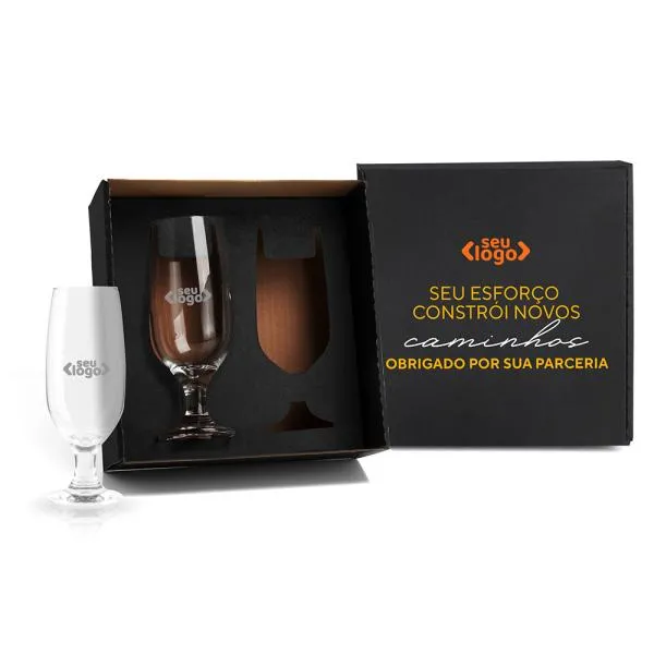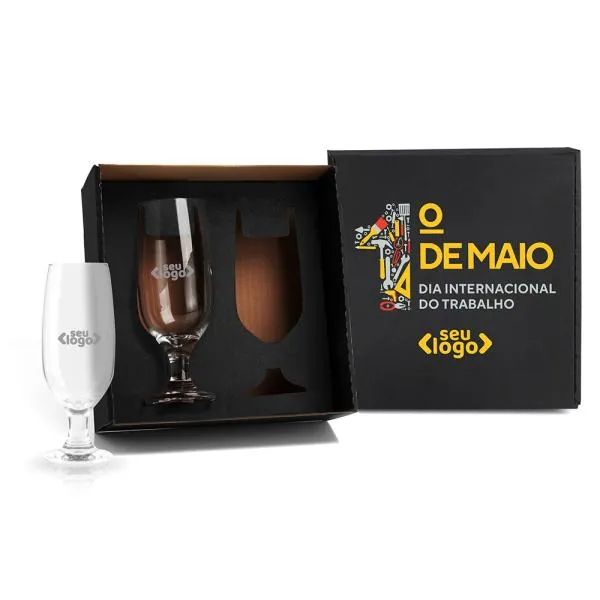 Um jogo com dois copos de vidro personalizados é uma forma direta de colocar sua marca nas mãos de quem importa, com presença visual em momentos de descontração e confraternização. Indicado para empresas que buscam brindes com apelo emocional e uso cotidiano, especialmente em datas comemorativas como o Dia do Trabalho. Com gravação a laser nos dois copos e embalagem em caixa preta incluída, o conjunto chega pronto para presentear, sem trabalho adicional de quem compra.