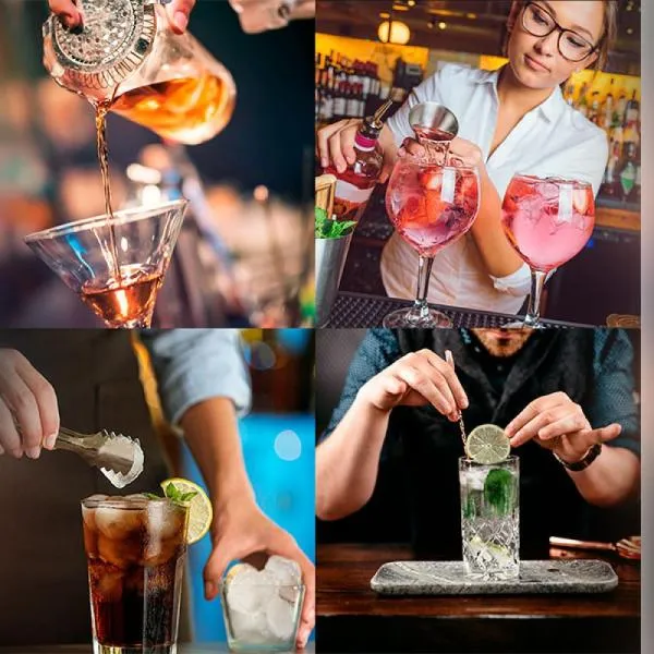- Composição: 11 peças — abridor saca-rolhas, coqueteleira em aço inox 350ml, colher de mistura, dois dosares, coador, dois bicos dosadores, pegador para gelo e socador