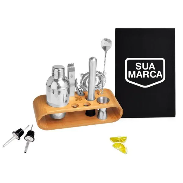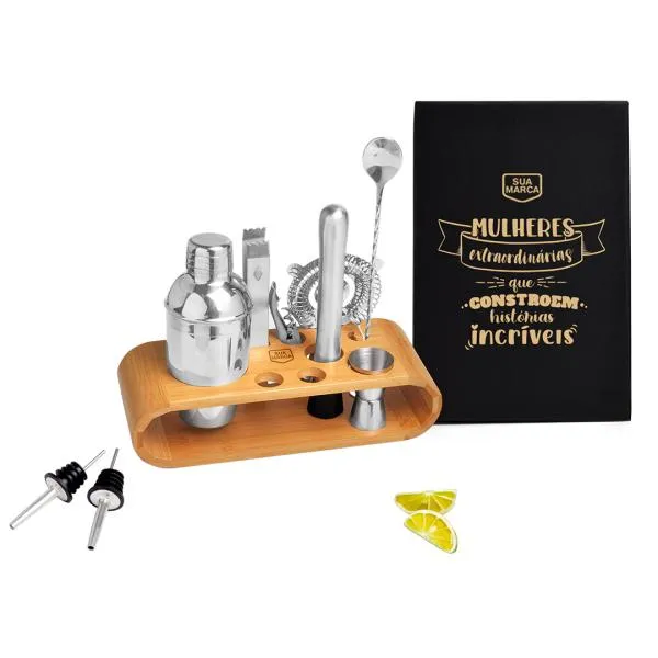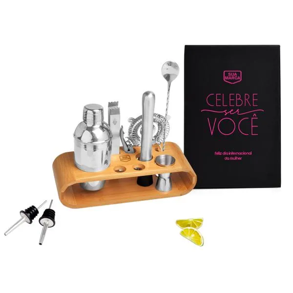 - Brinde de uso real: Um conjunto completo de acessórios para bar incentiva o uso frequente, mantendo sua marca presente no cotidiano de quem recebe