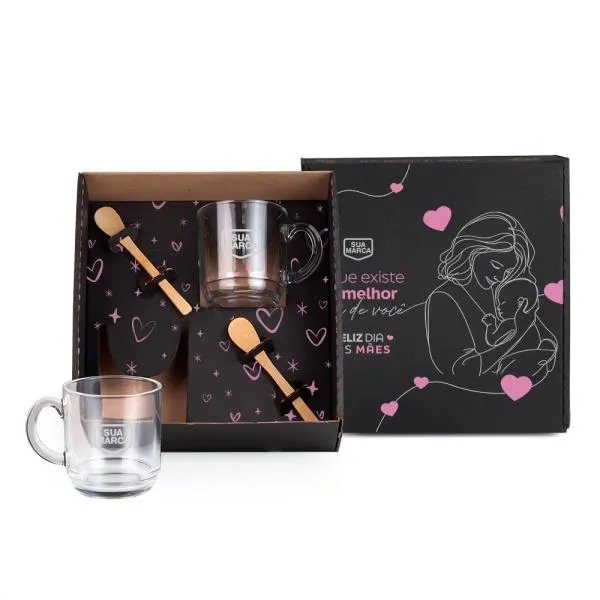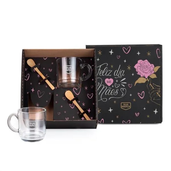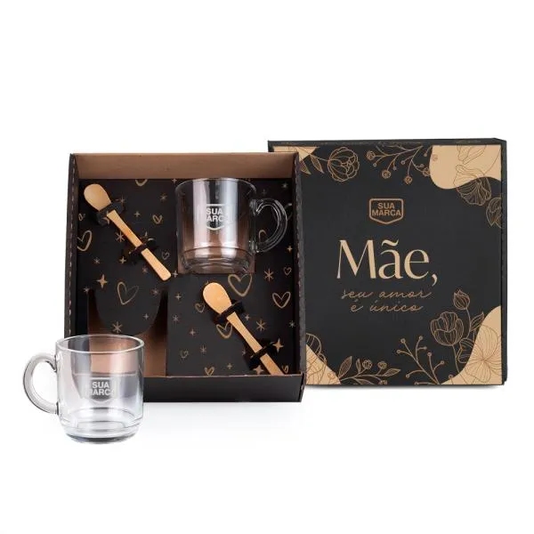 - Apresentação que gera valor: A caixa preta emoldura o conjunto e reforça o cuidado da sua empresa com cada detalhe da entrega