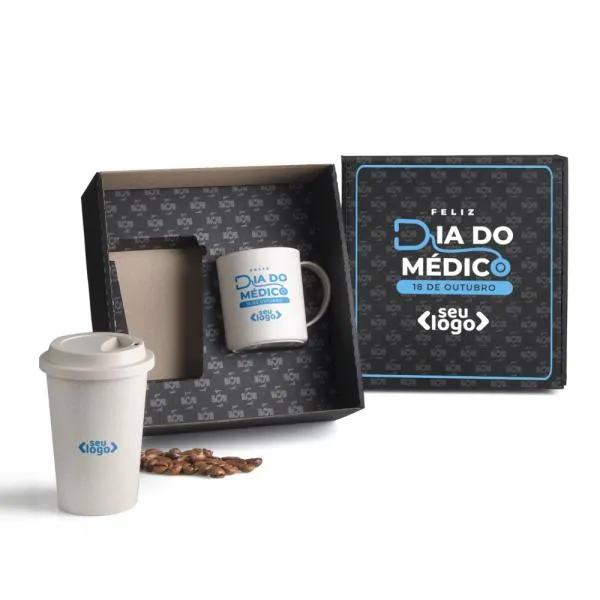 Kit com Copo e Caneca em Fibra de Bambu fortalece a identidade da sua marca com um presente que une utilidade e responsabilidade ambiental. Indicado para homenagens ao Dia do Médico, ações de relacionamento com profissionais de saúde e reconhecimento de equipes, o kit chega pronto para presentear em caixa preta com personalização em até três peças. Na White Brindes, você confere a qualidade pessoalmente no showroom ou aprova o layout virtual antes de qualquer produção.