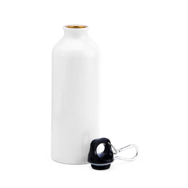 - Squeeze: Garrafa em alumínio na cor branca com capacidade de 500ml