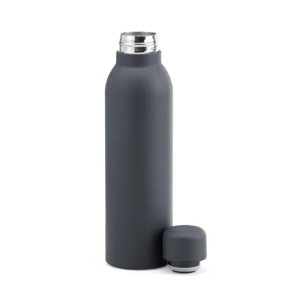 Composto por garrafa cinza, confeccionada com dupla parede em aço Inox e necessaire com alça em material sintético na cor preta.