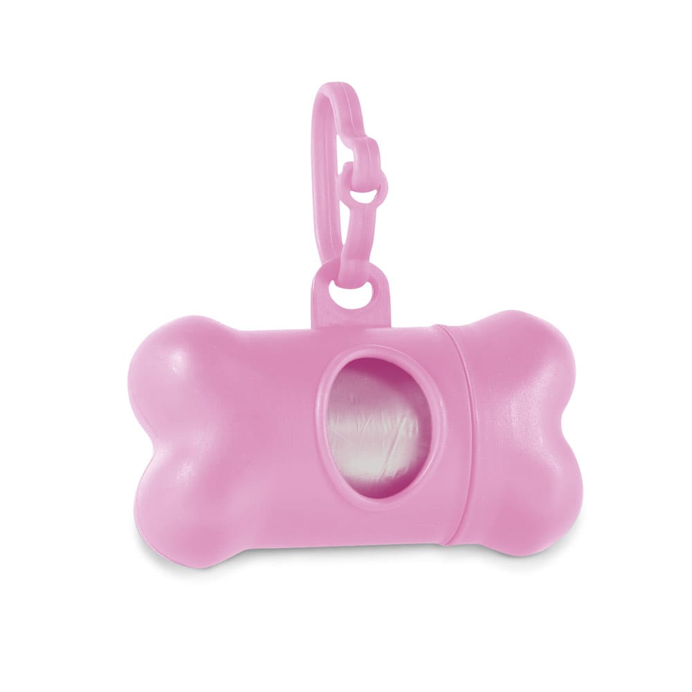 Kit de higiene para cachorro em PP. Contém 20 sacos higiénicos em PE. Porta-saco em formato de osso