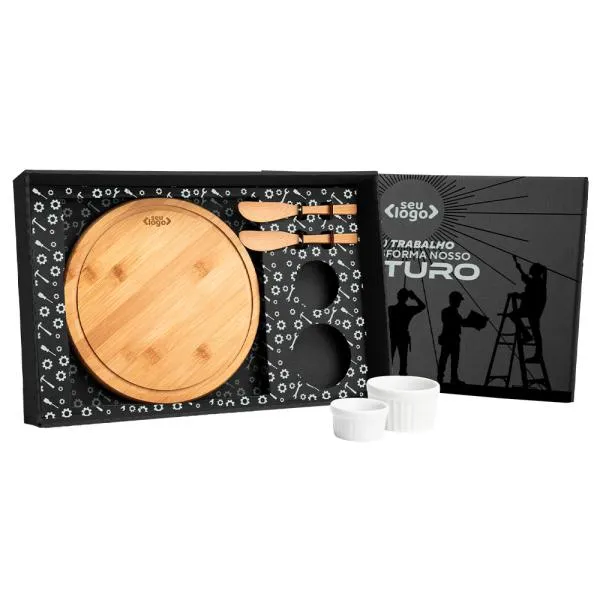Kit Para Petisco Com Tábua Redonda 5 Pçs – Dia do Trabalho