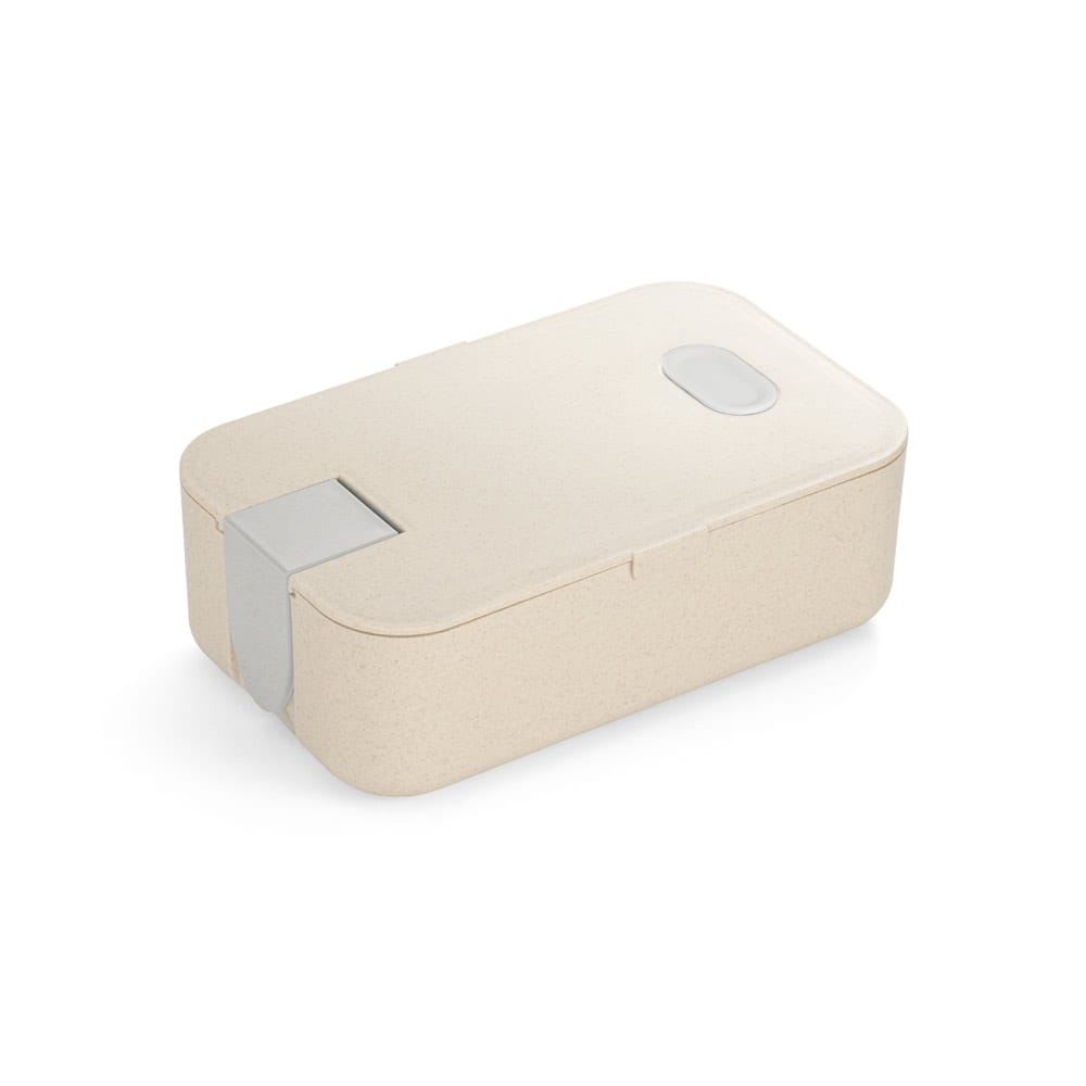 Marmita hermética em fibra de bambu (60%) e PP (40%) com um compartimento com capacidade até 1L. Contém suporte para celular. Apto para micro-ondas, retirando a tampa. Certificação EU Food Grade