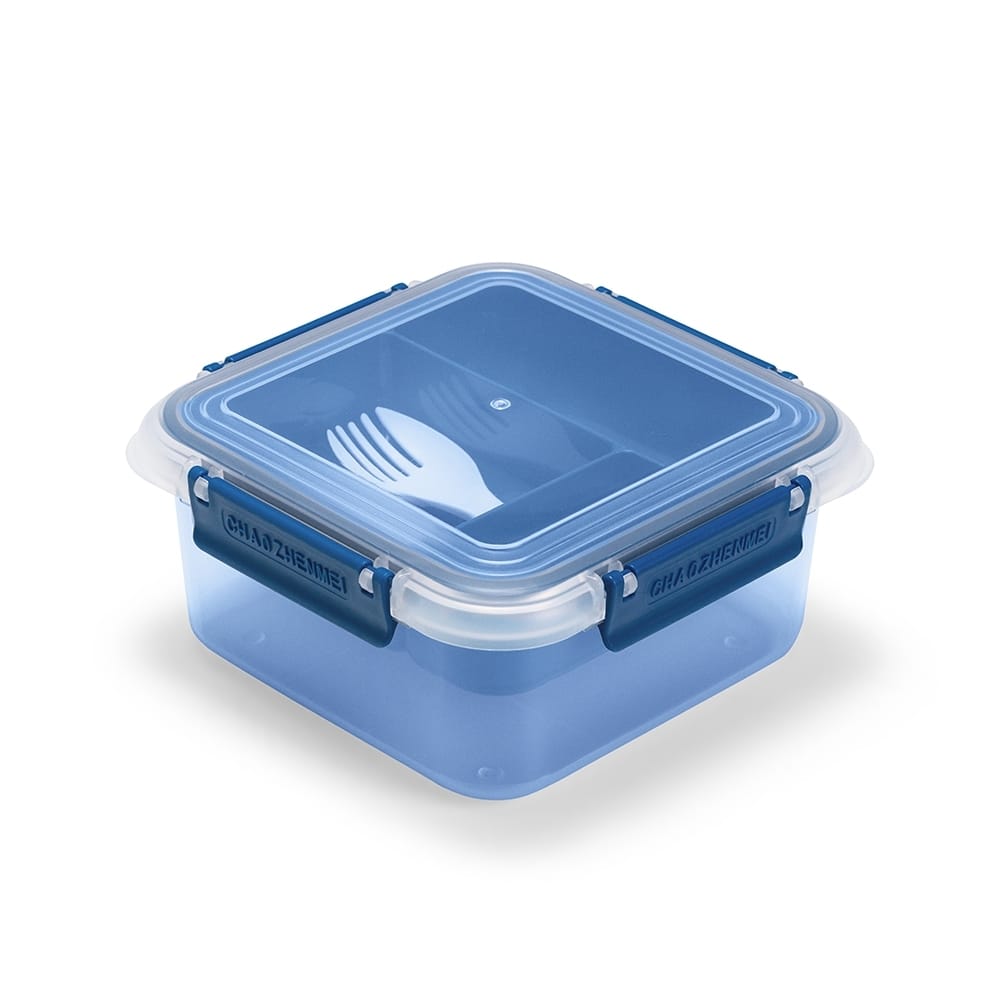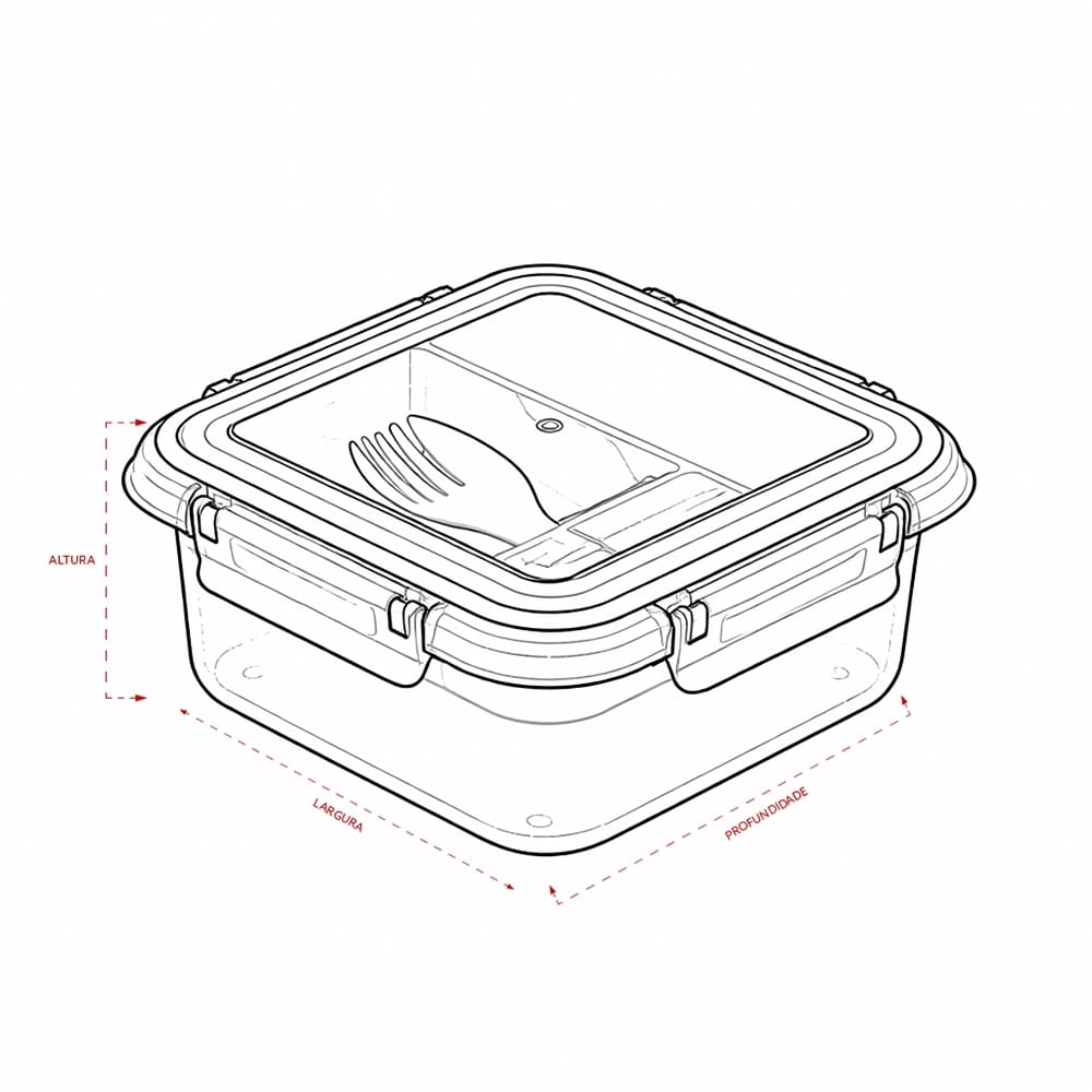 - Tampa: Hermética com anel de vedação em silicone e quatro travas laterais para maior segurança no transporte