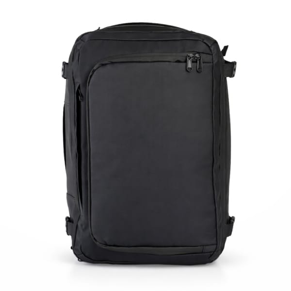 Mochila com capacidade máxima de 28 litros confeccionada em Couro Sintético impermeável. Possui compartimento principal com cinta compressora de engate plástico e bolso em PEVA com fechamento em zíper para objetos úmidos. Conta ainda com dois compartimentos frontais em tamanhos diferentes, sendo um deles com bolso em tela de malha, além de dois compartimentos traseiros, um com espaço para notebook de até 17,3 polegadas e outro para armazenamento das alças de costas, permitindo o uso em formato de mala Dispõe de dois pares de engates compressores nas laterais, além de engate para peitoral e revestimento acolchoado nas alças de mão e na área das costas.