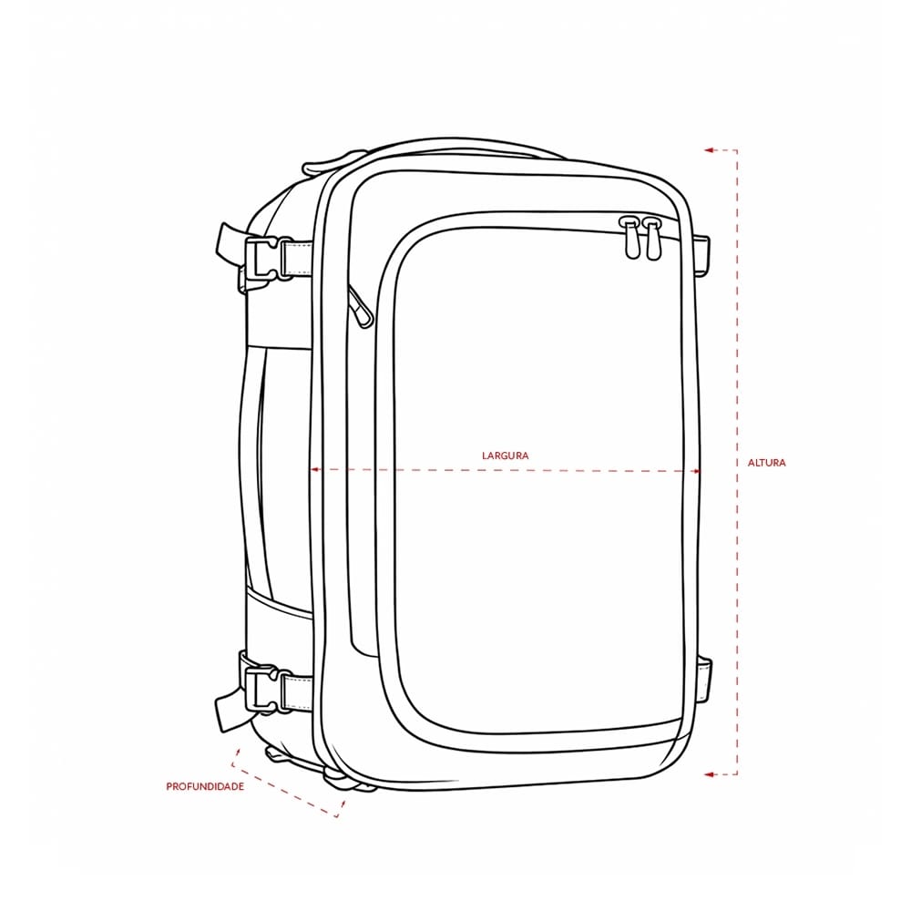 - Uso como mala: Quando as alças de costas são armazenadas no compartimento traseiro, a mochila pode ser transportada em formato de mala