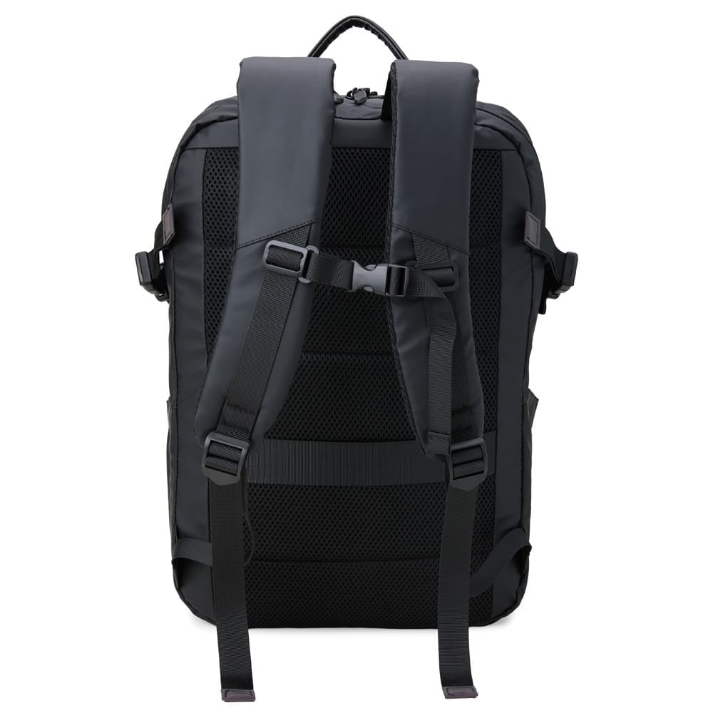 Mochila de 33 Litros confeccionada em couro sintético resistente à água. Contém três compartimentos, sendo um deles exclusivo para acomodar capacete de bicicleta e outro para notebook de 15,6″ com revestimento aveludado. A mochila possui faixa e detalhes refletivos, bolsos externos nas laterais, bolso interno de plástico exclusivo para itens molhados, bolso interno de tela, alça para engate em mala de viagem, alça regulável revestida com espuma, parte traseira também revestida com espuma para maior conforto e fivelas para melhor expansão e segurança da mochila.