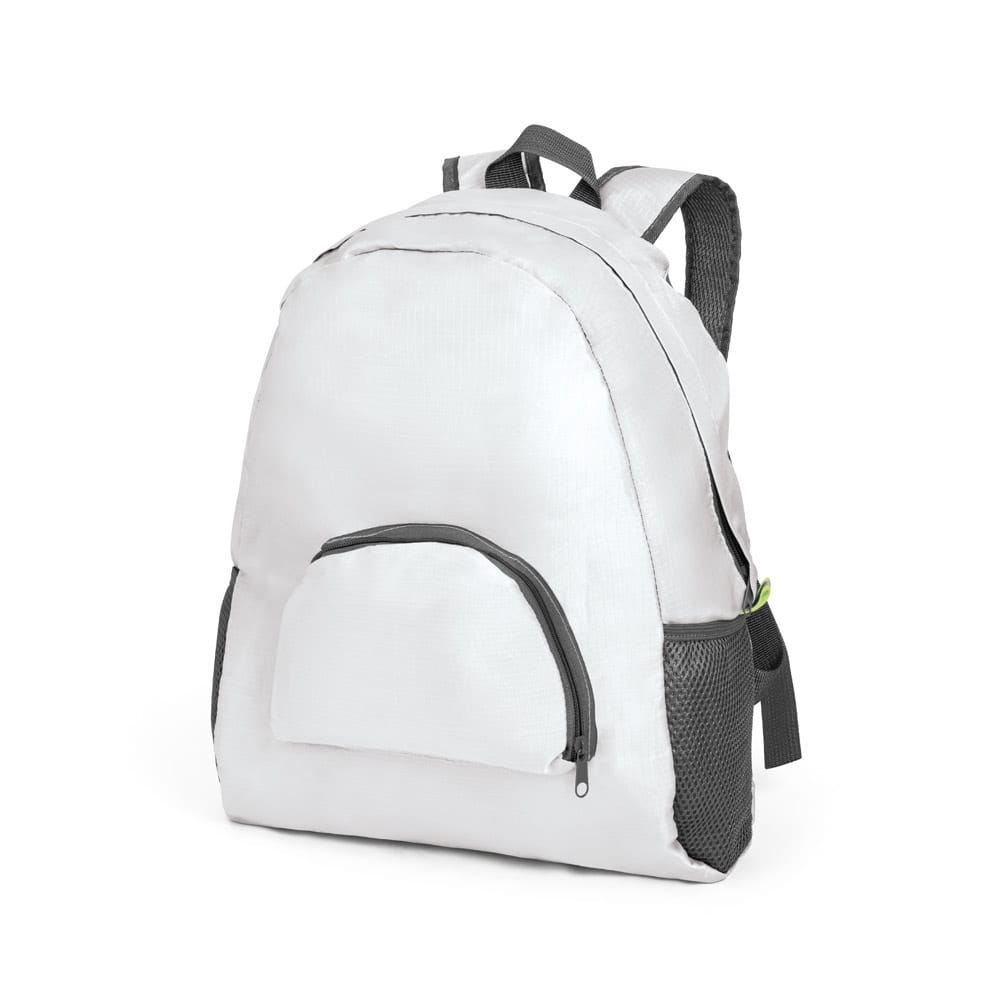 Mochila dobrável em Nylon Ripstop com bolso frontal e dois bolsos laterais em tela mesh. Capacidade até 11L. Fornecida desdobrada