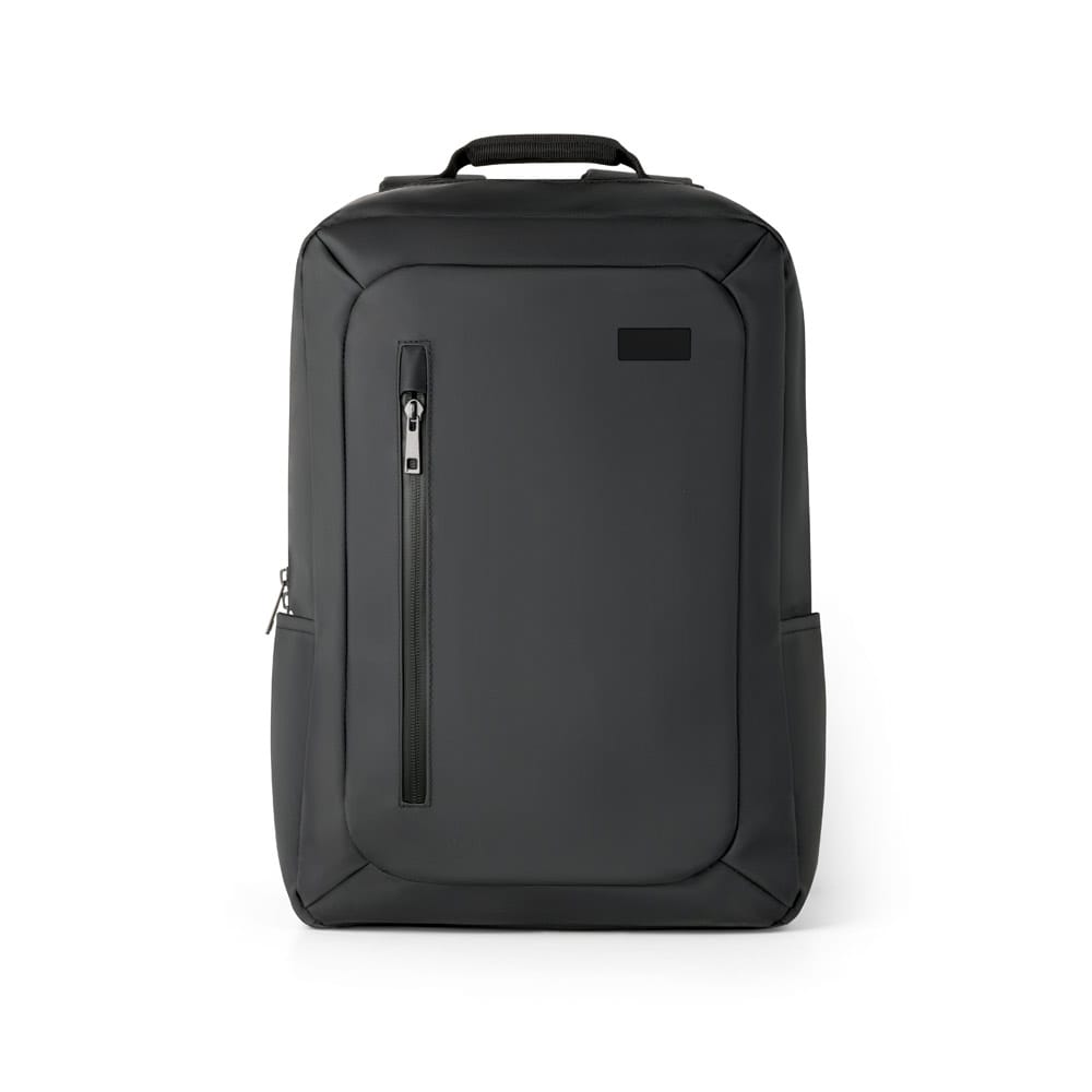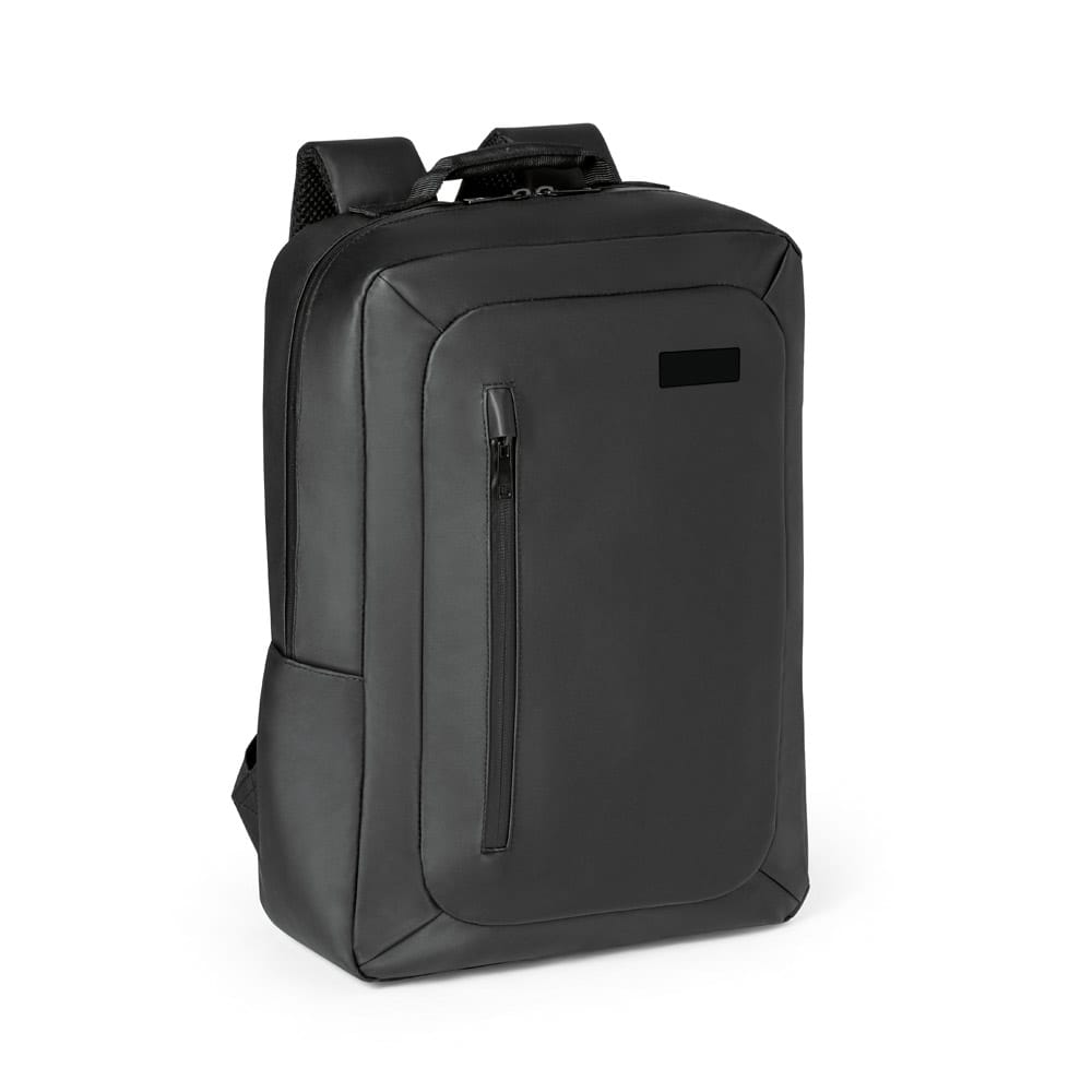 Mochila para notebook Oxford impermeável com compartimento principal almofadado com divisória para notebook até 15.6”. Bolso frontal e zípers impermeáveis. Bolso lateral em tela e parte posterior almofadada, com sistema de apoio acolchoado para as costas e alças almofadadas. Placa metálica removível com imã para fácil gravação. Capacidade até 10L