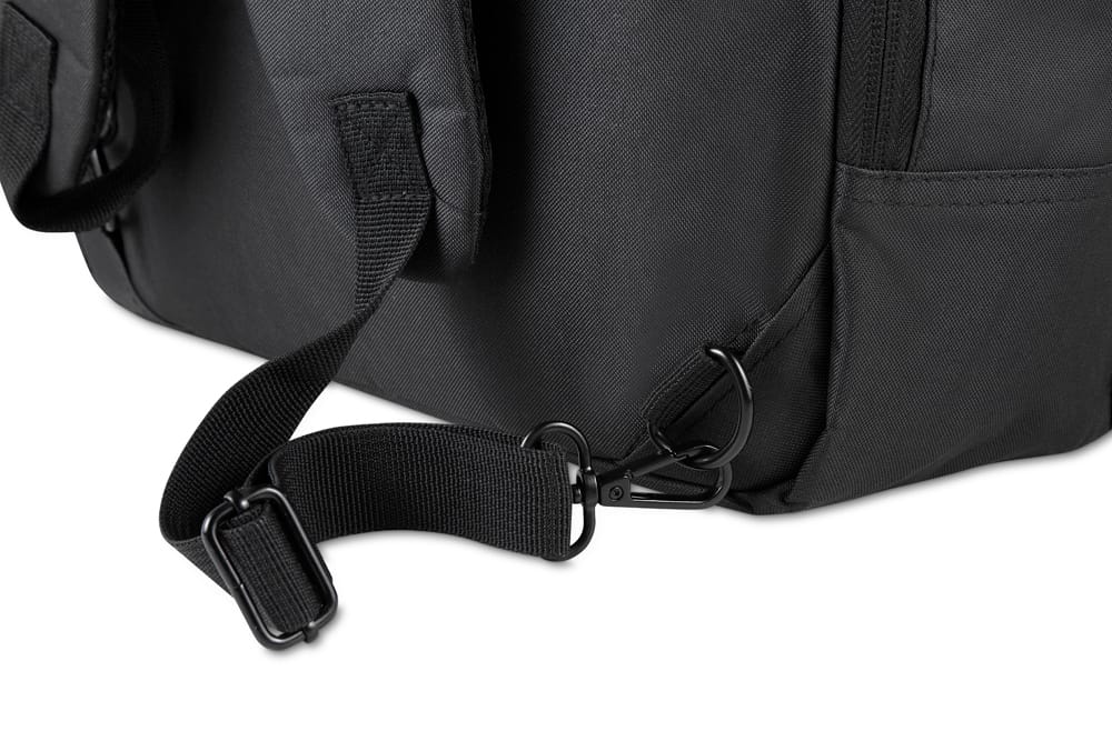 - Alças: Alça lateral e alça de ombro acolchoadas, além de alça de mão para diferentes formas de transporte