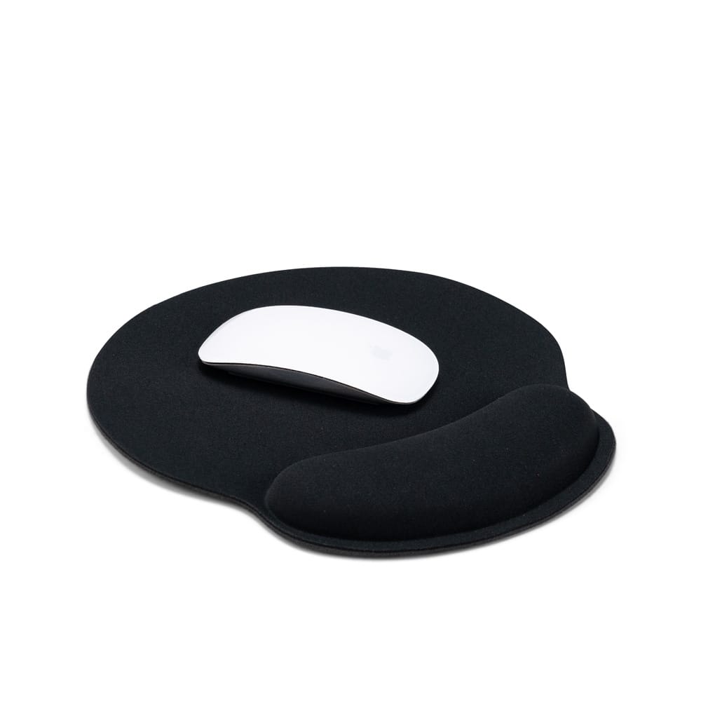 Mouse pad ergonômico de estrutura flexível. Contém superfície em poliéster e base em borracha com textura antiderrapante, além de espuma ergonômica para o punho.
