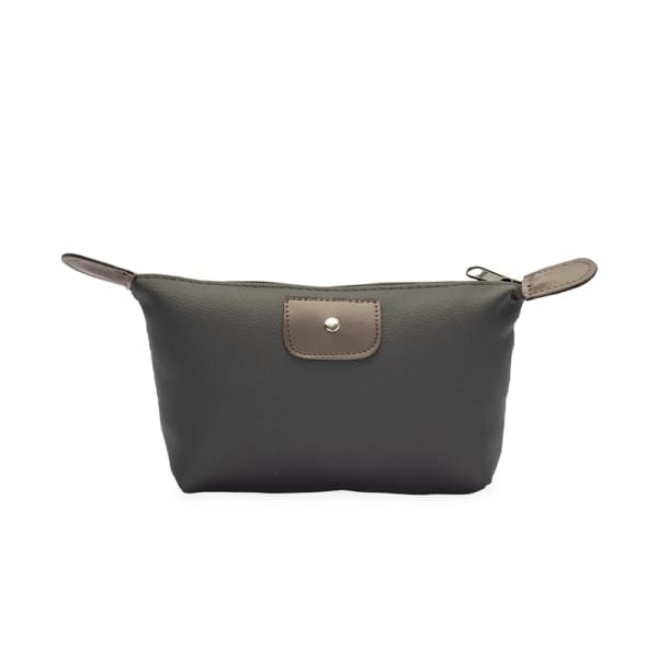 Nécessaire em couro sintético impermeável e fechamento em zíper e detalhe frontal metálico.