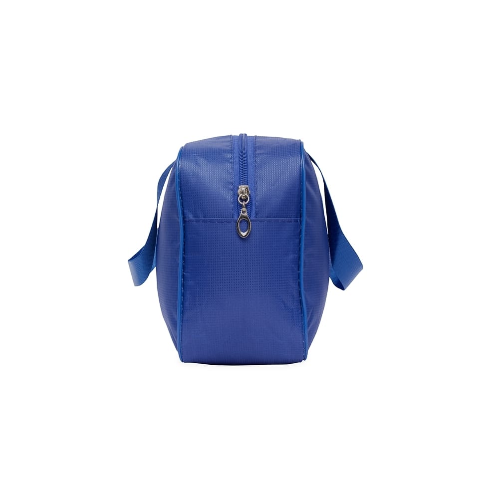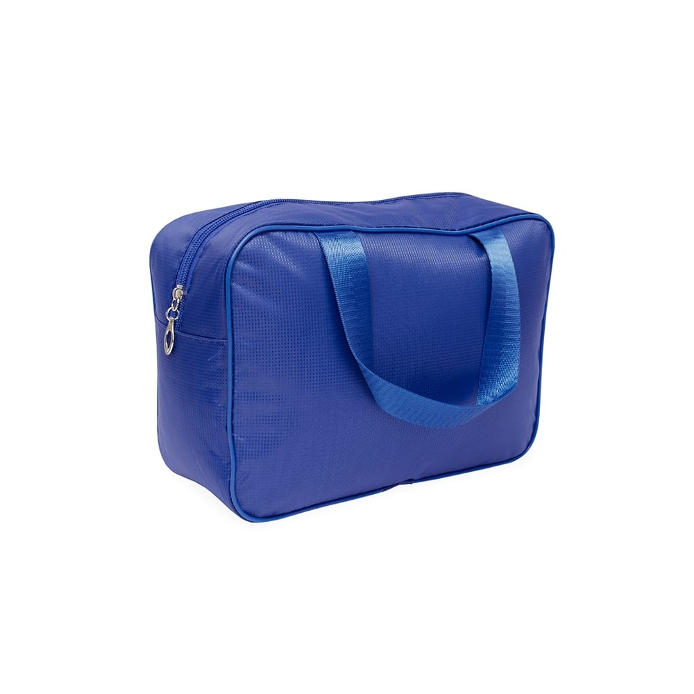 Nécessaire impermeável confeccionada em Poliéster e revestimento interno em PVC. Possui fechamento em zíper e duas alças em nylon.