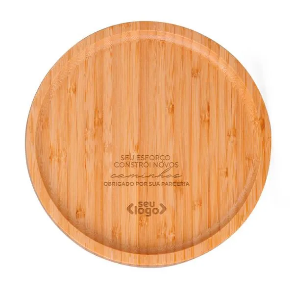Solicite seu layout virtual gratuito e visualize como a gravação a laser ficará aplicada nesta petisqueira de bambu antes de qualquer aprovação. Se preferir, visite nosso showroom em Joinville e confira pessoalmente a qualidade do material. Nossa equipe consultiva está disponível para orientar a melhor estratégia de personalização para a sua ação.Quem orçou este produto também orçou esses