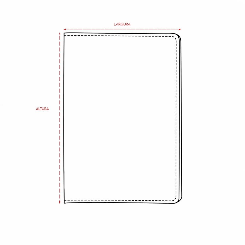- 🎨 Área de personalização: 12 cm x 8 cm (capa) e 12 cm x 5 cm (bolso interno)