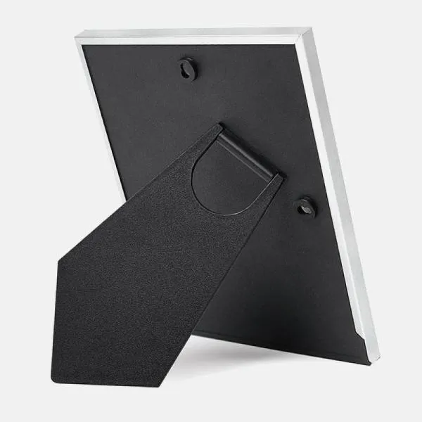 Conta com vidro frontal, apoio em polipropileno preto e uma fina espuma no interior para acomodar melhor a foto. Pode ser usado na vertical ou horizontal, tanto na parede quanto na superfície.