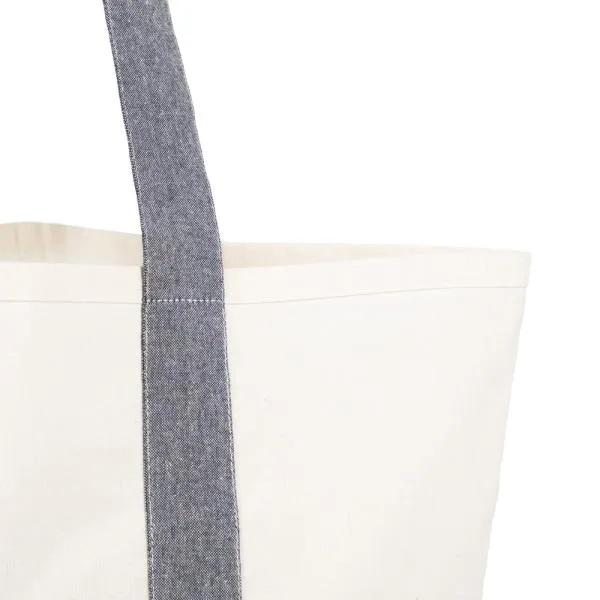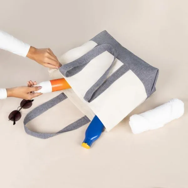 Sacola em algodão reciclado bege natural/melange cinza com alça.