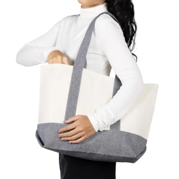 Sacola Em Algodão Reciclado Bege Natural/Melange Cinza 47,5X31Cm