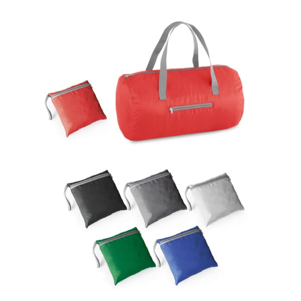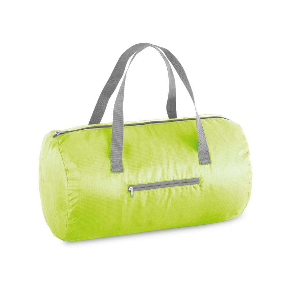 Sacola esportiva dobrável em Nylon Ripstop com bolso frontal. Fornecida desdobrada. Capacidade até 17L