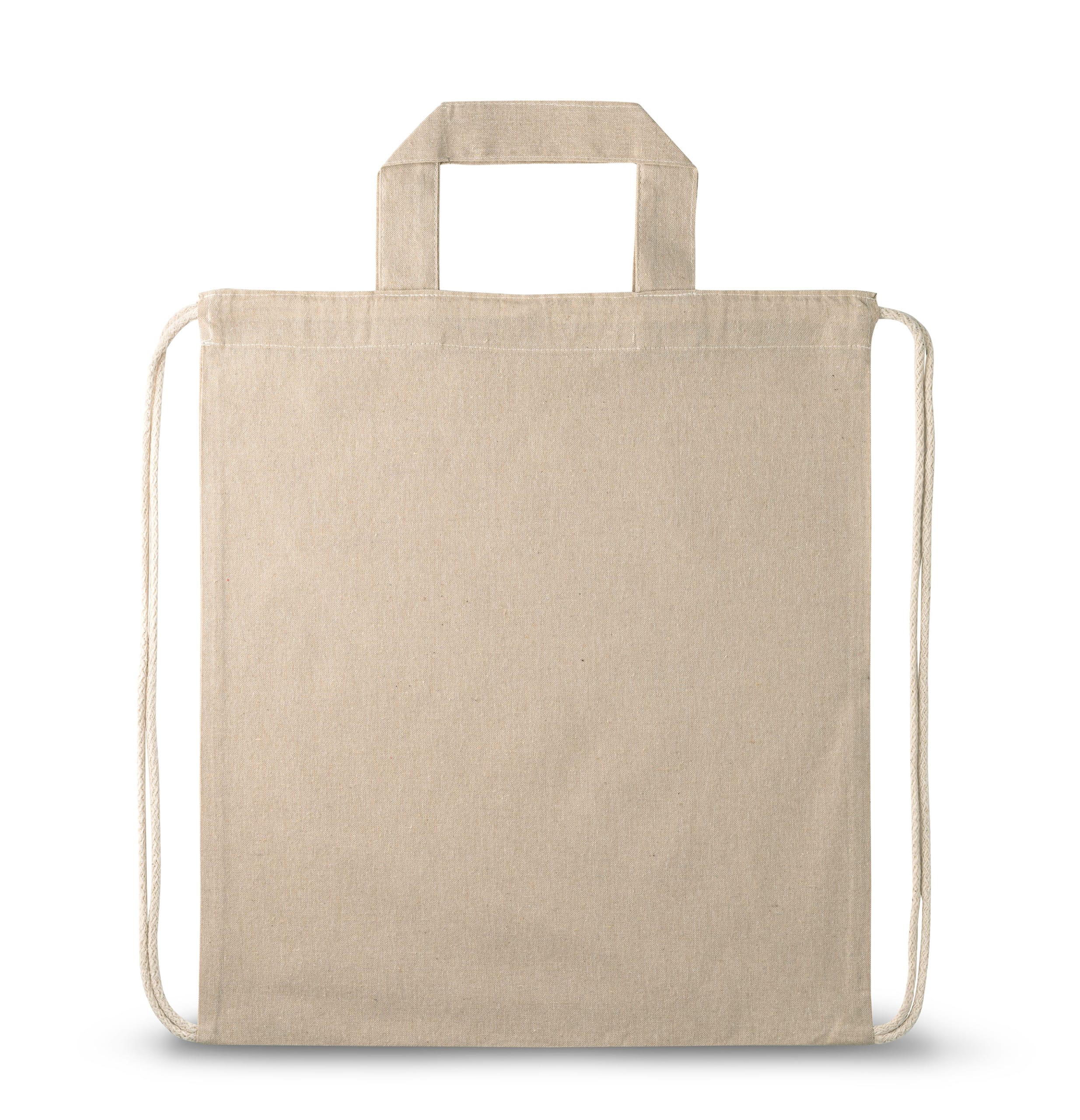 Sacola Tipo Mochila em 70% Algodão Reciclado e 30% Poliéster Reciclado (140g/m²) sem Tingimento