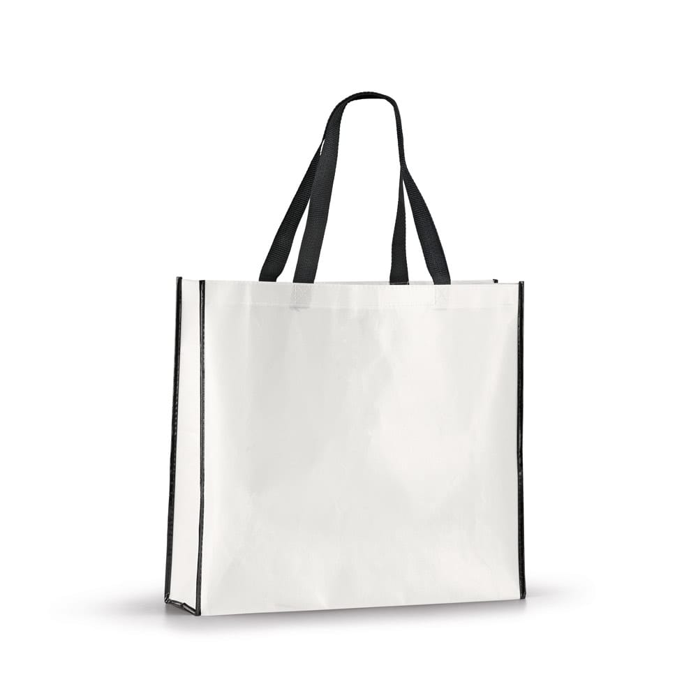 Sacola em non-woven laminado (120 g/m²) com laminação brilhante. Alças em webbing de 60 cm