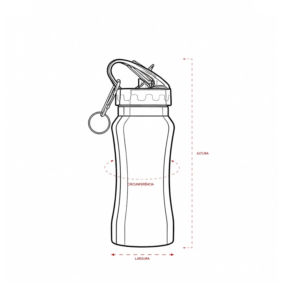 - Acessórios inclusos: Canudo interno removível e mosquetão metálico com argola para prender onde precisar