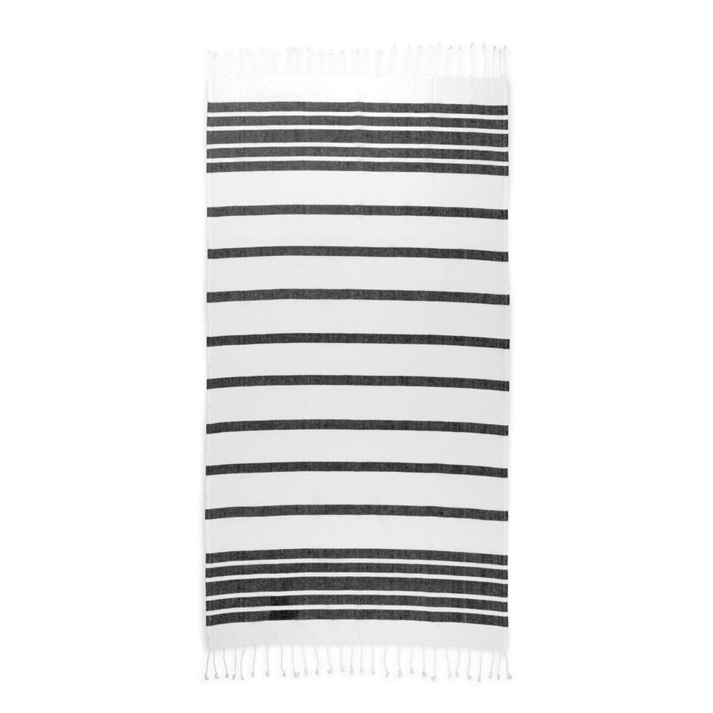 Toalha de praia em algodão 70% reciclado e poliéster 30% reciclado (180 g/m²), com um design minimalista e elegante para os seus dias de praia