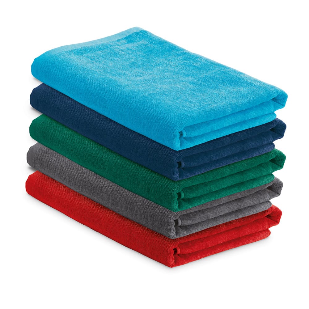 Toalha de praia em veludo de algodão (320 g/m²), disponível em várias cores. Fornecida com sacola em non-woven (80 g/m²)
